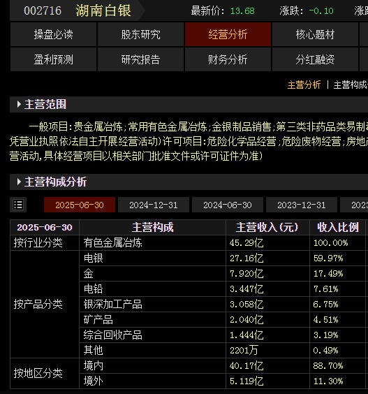 大家别忘了,湖南白银除了白银,还有大半业绩是黄金,