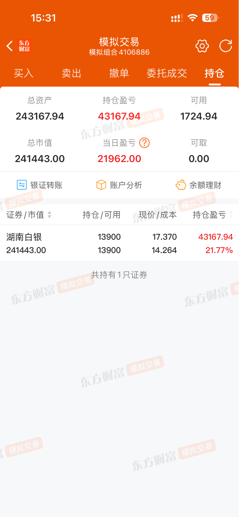 事实证明只要买着不动,就能发财,模拟才能真的无视日内波动
