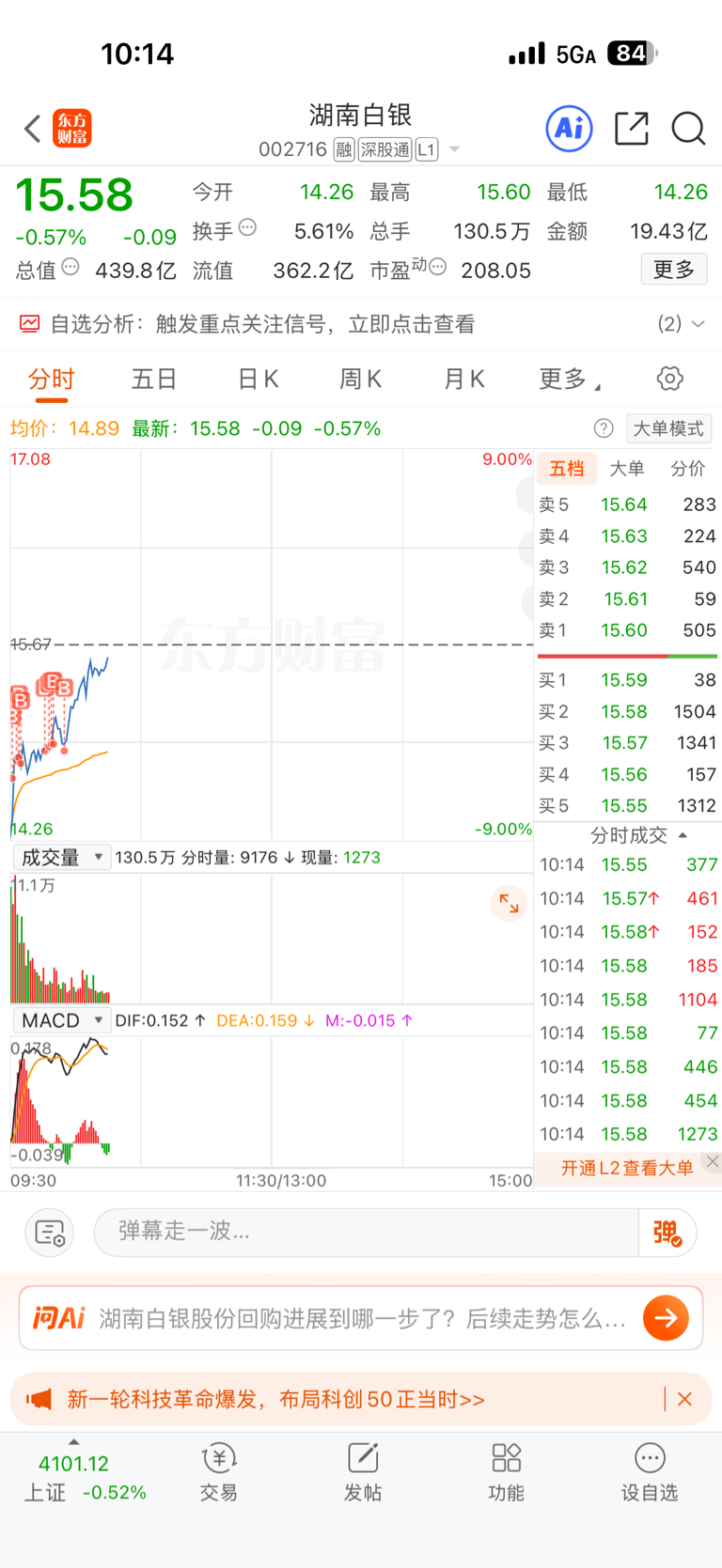 $湖南白银(SZ002716)$ 抄了个底,你们上车没?#实盘记录#