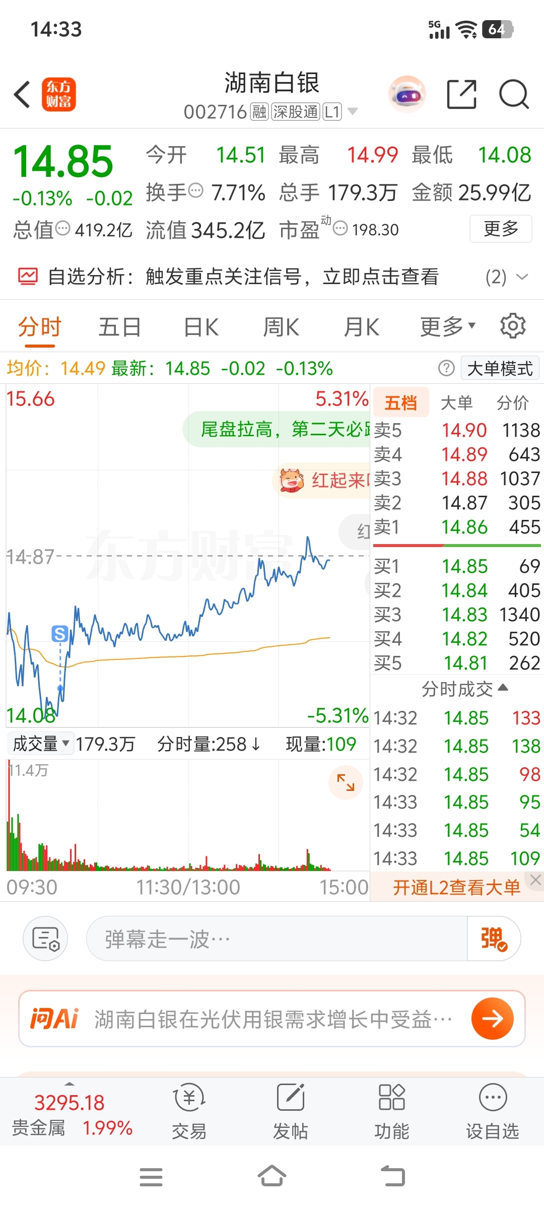 $湖南白银(SZ002716)$ 走时好好的回不去了