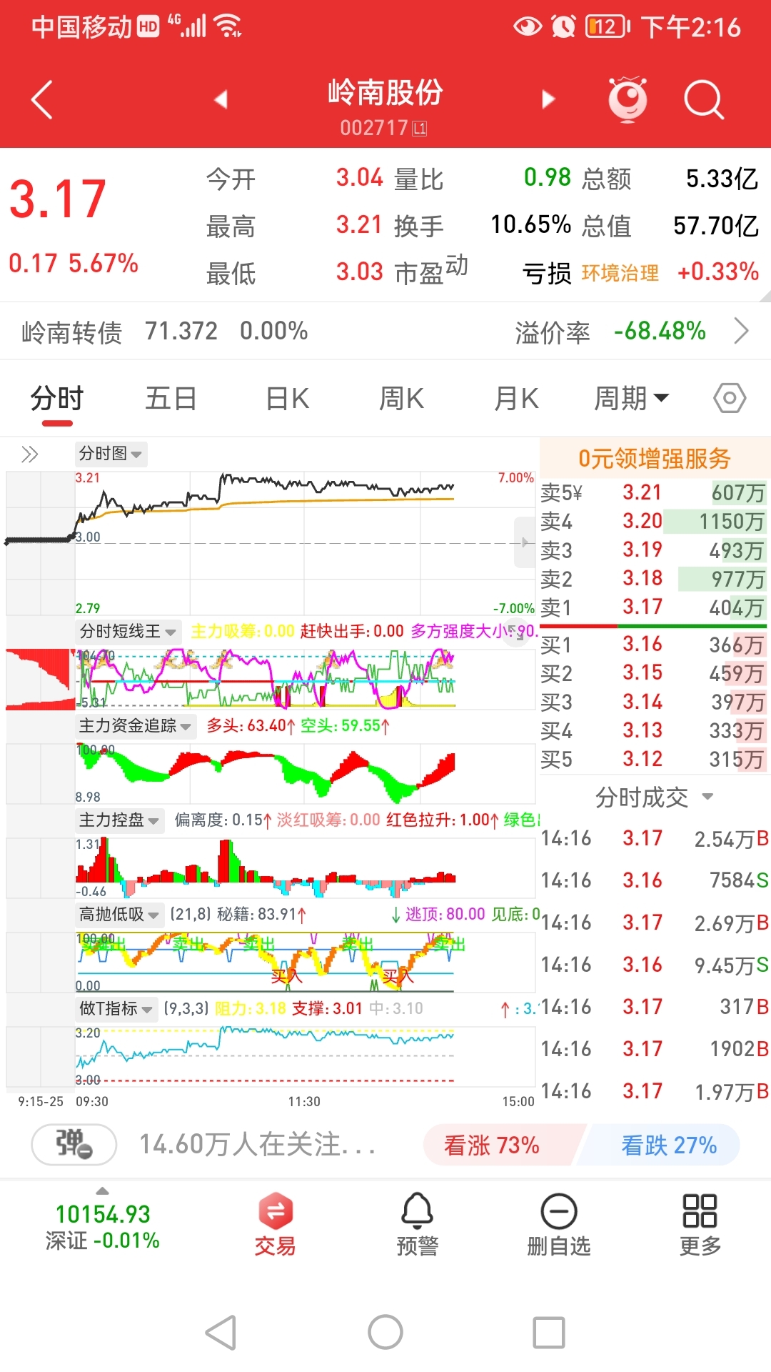 ...虽大盘高开低走,但大多数个股确有震荡反抽;此股今日能否站稳5日线呢?!...上压下托中度控盘...其实放点量,涨停也就一瞬间