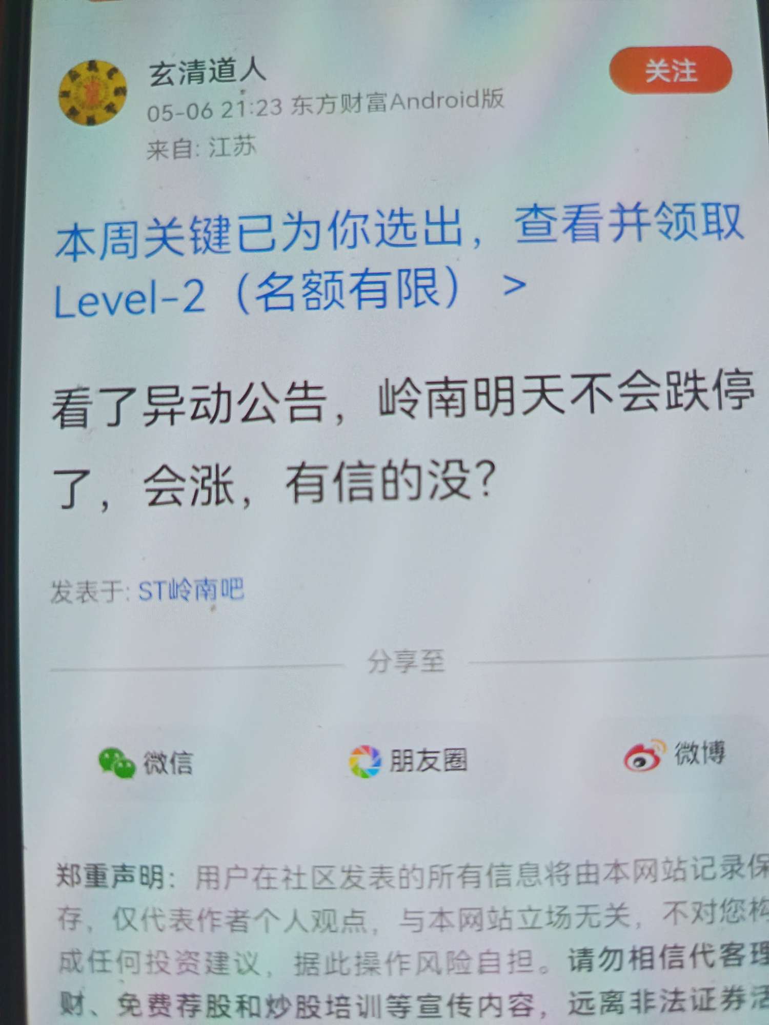 温馨提示: 1.根据《证券法》规定,禁止编造、传播虚假信息或者误导性信息,扰乱证券市场;2.用户在本社区发表的所有资料、言论等仅代表个人观点,与本网站立场无关,不对您构成任何投资建议。用户应基于自己的独立判断,自行决定证券投资并承担相应风险。《东方财富社区管理规定》