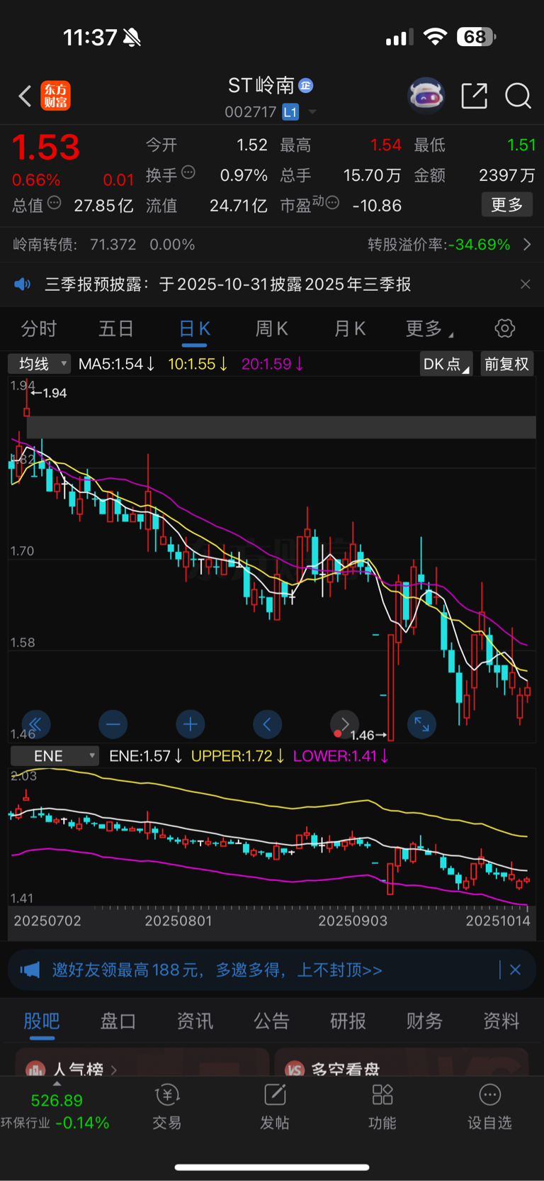 $ST岭南(SZ002717)$ 这走势……