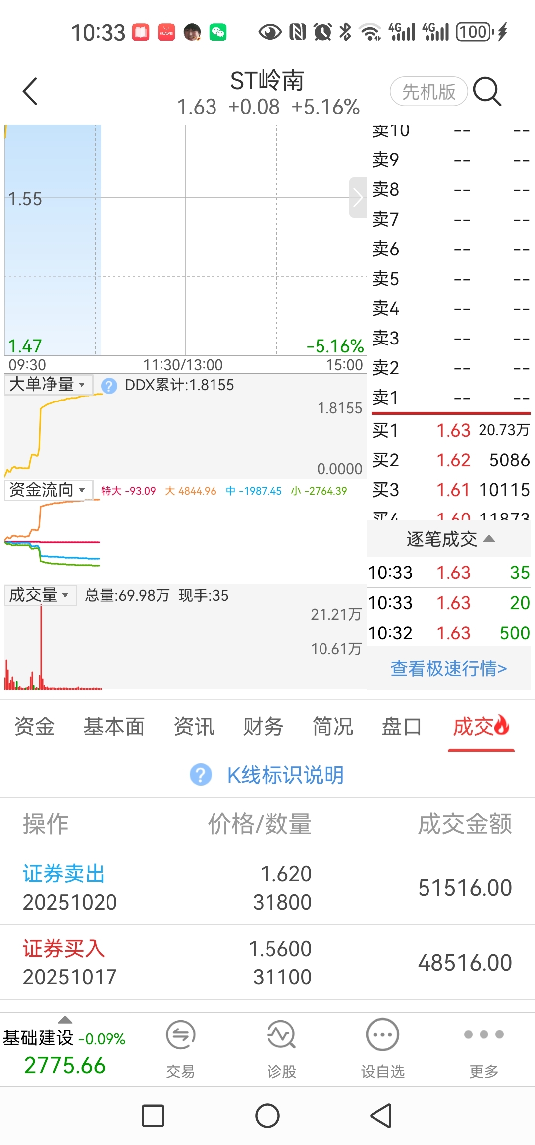 $ST岭南(SZ002717)$ 看样子这1.62卖的不是时候,明天能回调就接回去,若直接开启涨不停走势,少几万股卖飞了也无痛关