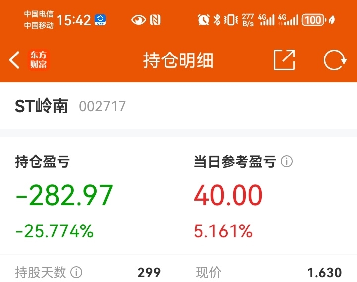 $ST岭南(SZ002717)$ 不错,今天赚三十元。不错。