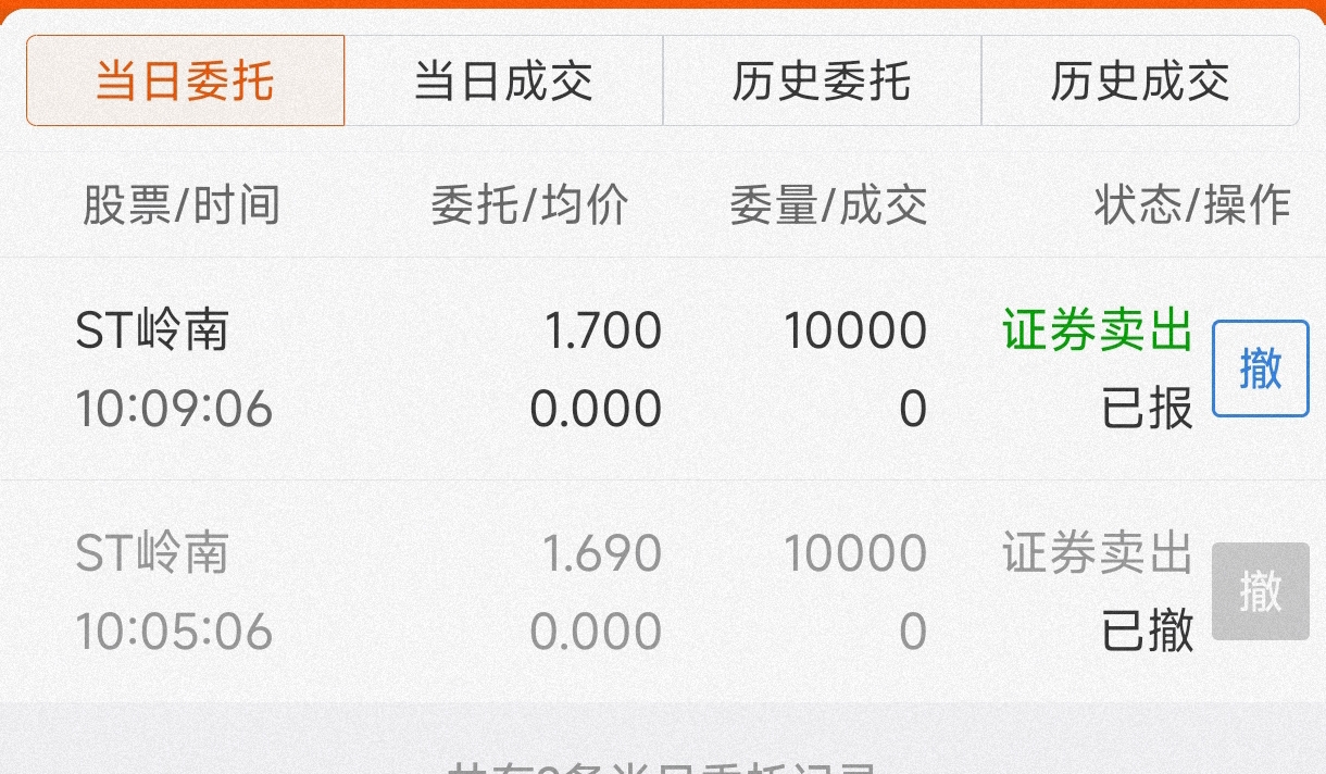 $ST岭南(SZ002717)$ 也是倒霉,上午就差几千手,就到我的卖单了,,想做个T的