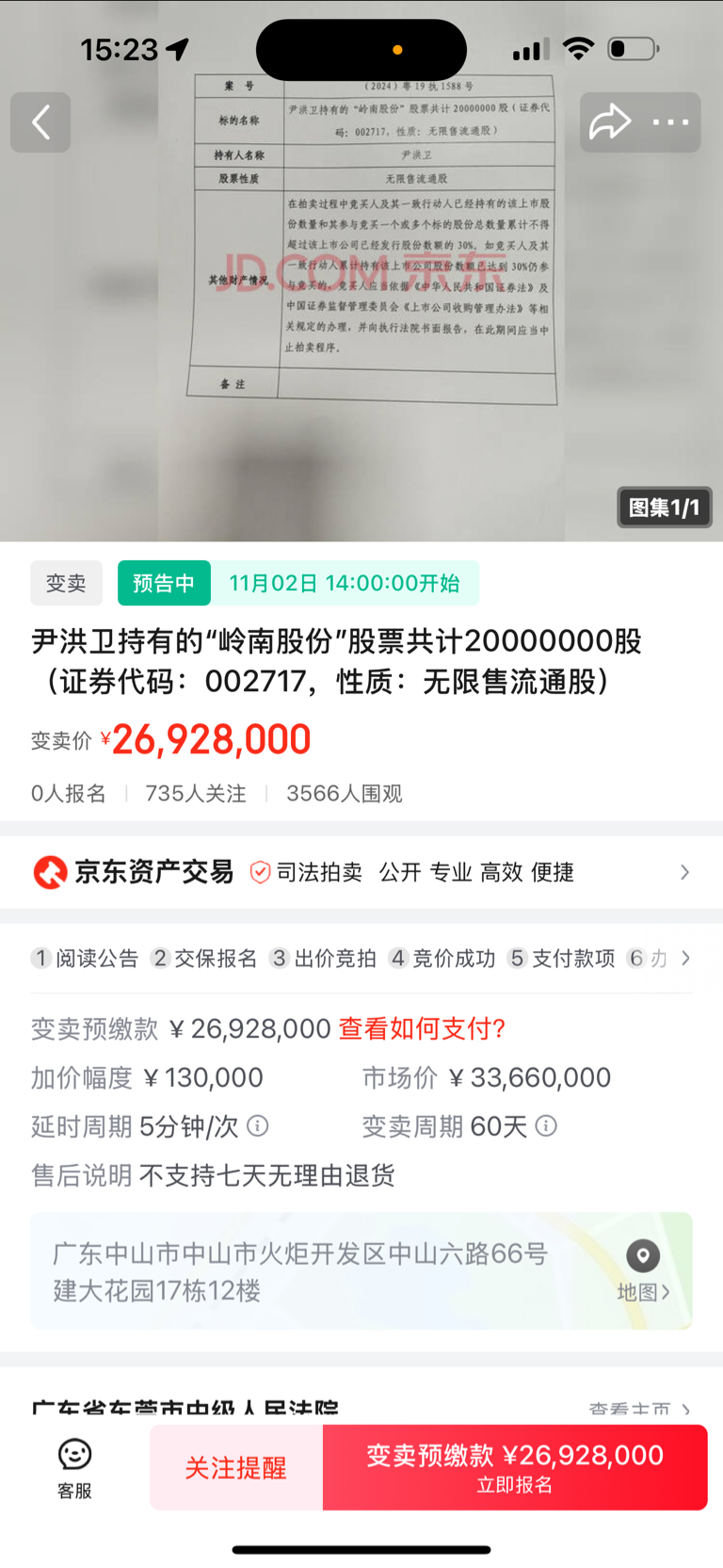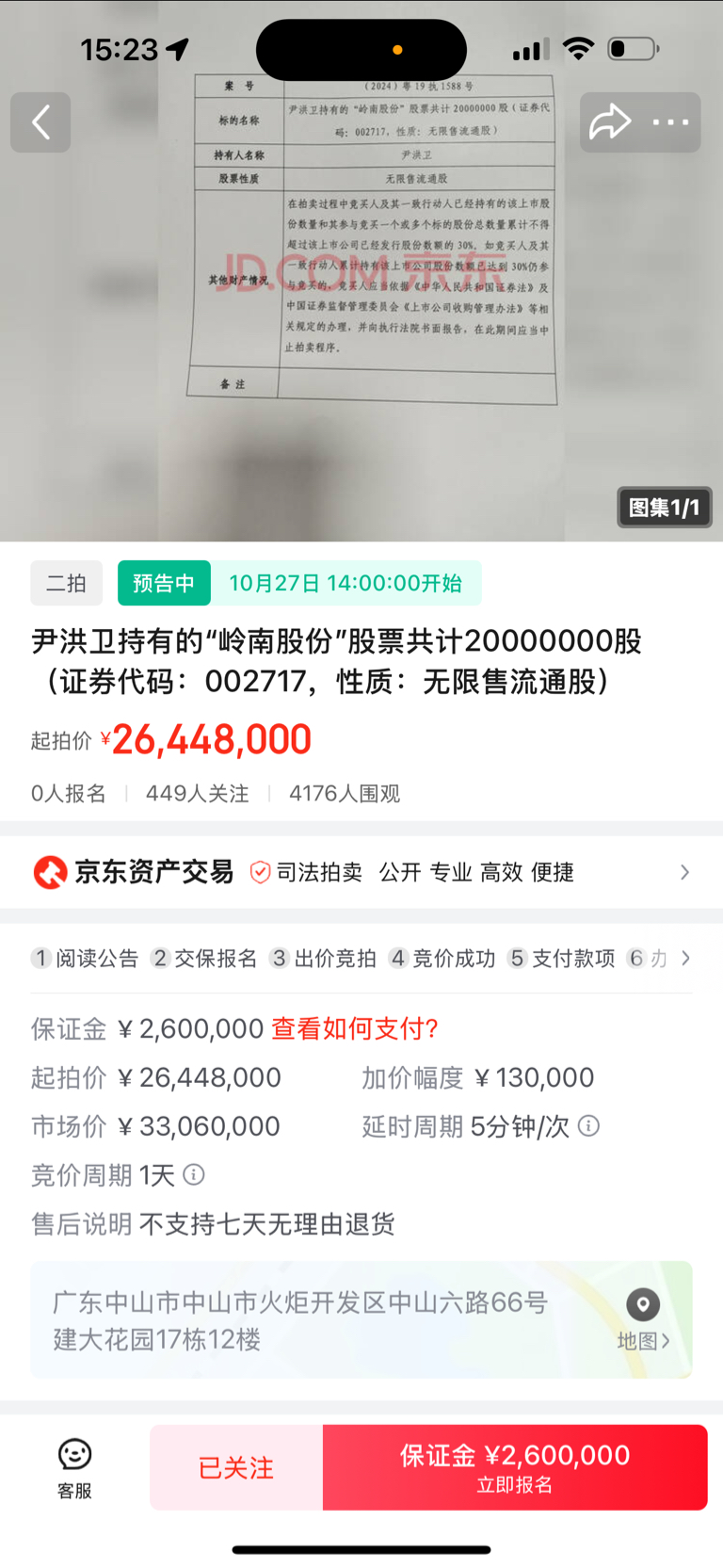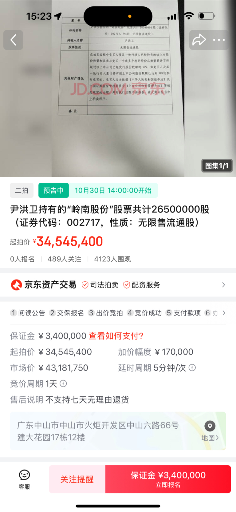 $ST岭南(SZ002717)$ 分好几次拍,不会都没人报名吧,哈哈哈。股价还是太高啊
