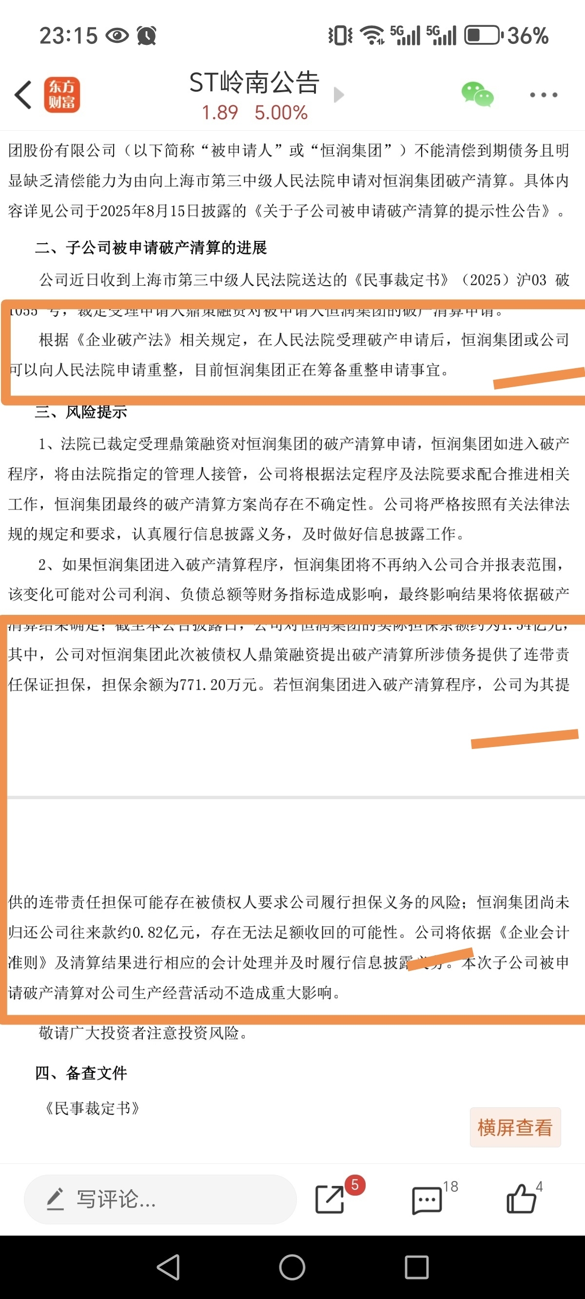 这个重大利好,公司申请重整!!公司指的就是上市公司(ST岭南),买少了啊...!