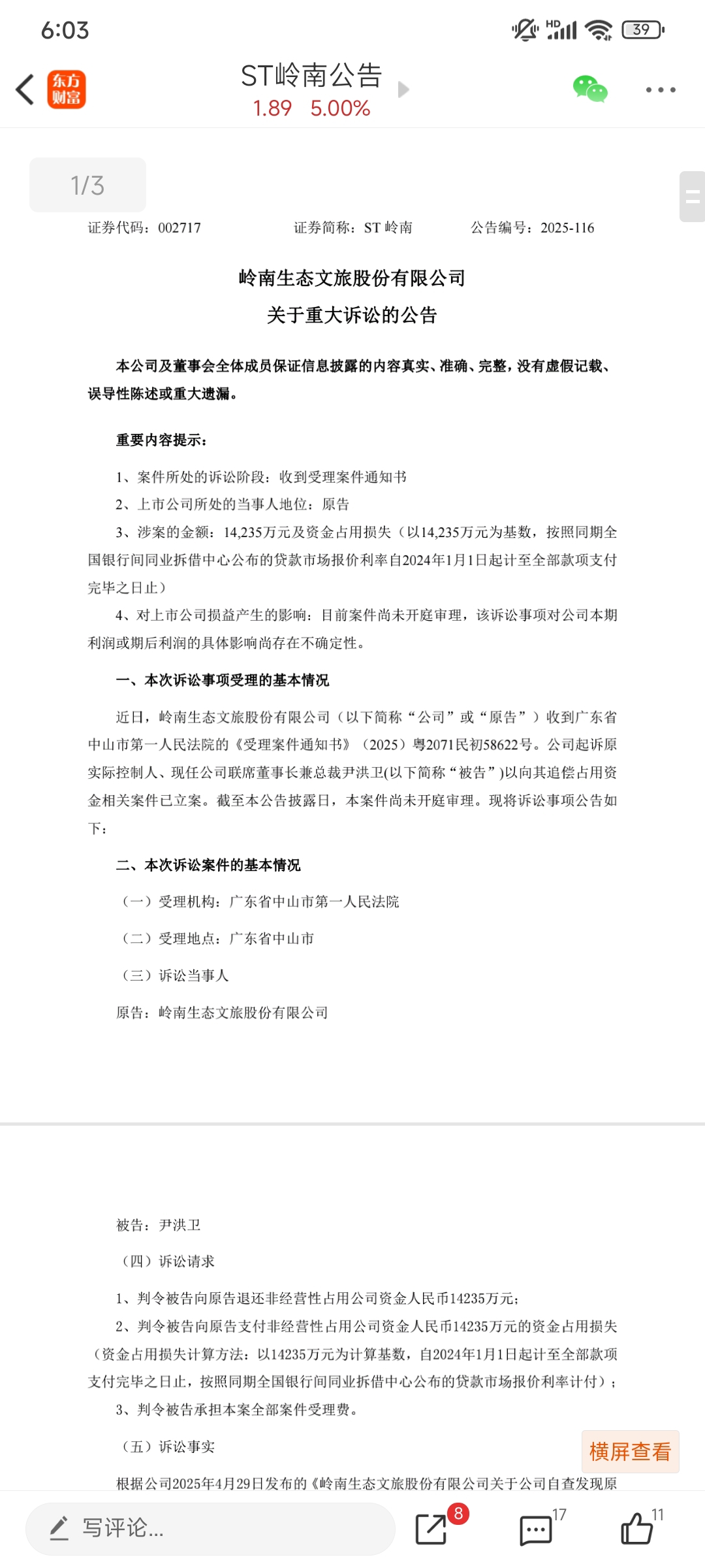 $ST岭南(SZ002717)$  ST岭南超级利好深度拆解:诉讼清障、股权重构、赛道腾飞,瑜哥底部布局的财富密码(买卖自由 只供参考)