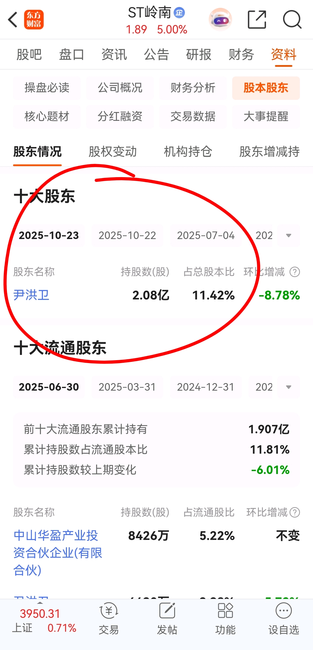 很奇怪,为啥最新信息十大股东只有一个?还没有中山?