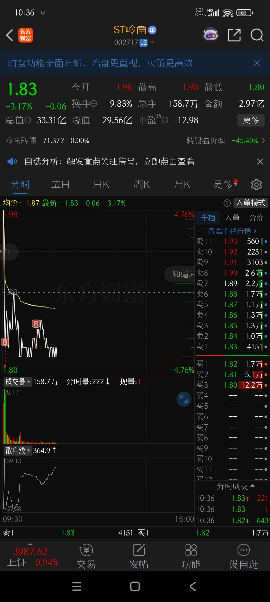 $ST岭南(SZ002717)$ 给机会了果断加仓,放手一搏