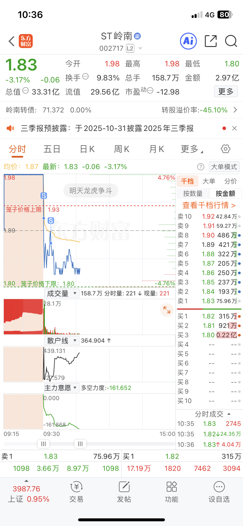 $ST岭南(SZ002717)$ 一分钟没看集合竞价就这样