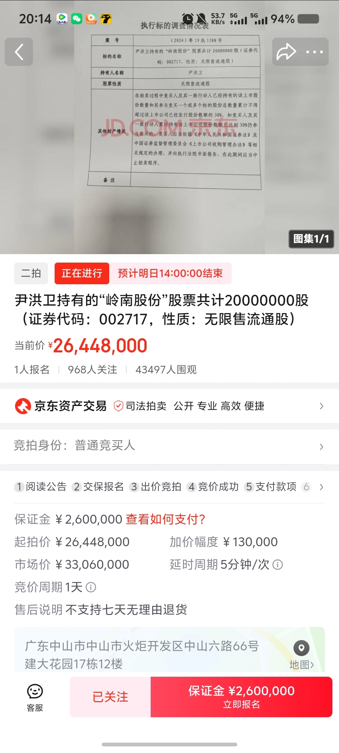 $ST岭南(SZ002717)$ 明天早上拍,还是下午拍?我看是14点前结束