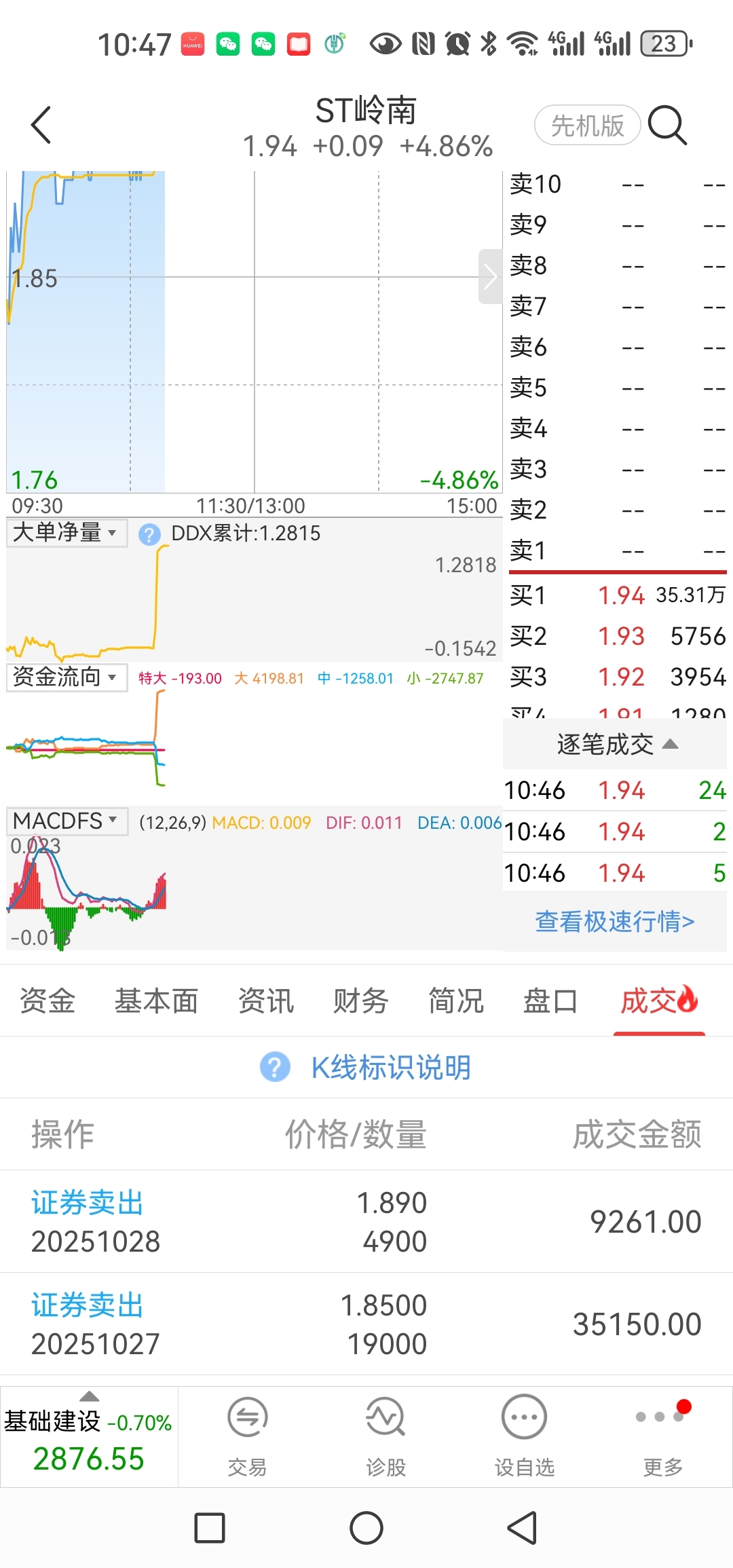 $ST岭南(SZ002717)$ 靠,又T飞了一部分!庄家是不是老是惦记我三瓜两枣!40多万股T掉了7万多股