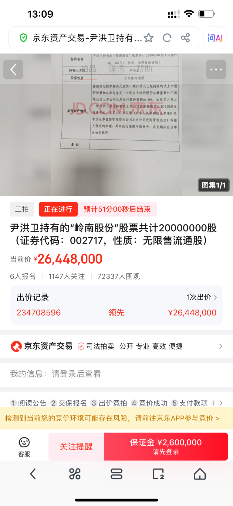 $ST岭南(SZ002717)$ 股权争抢激烈,6个人报名,已出价。。连续涨停开启