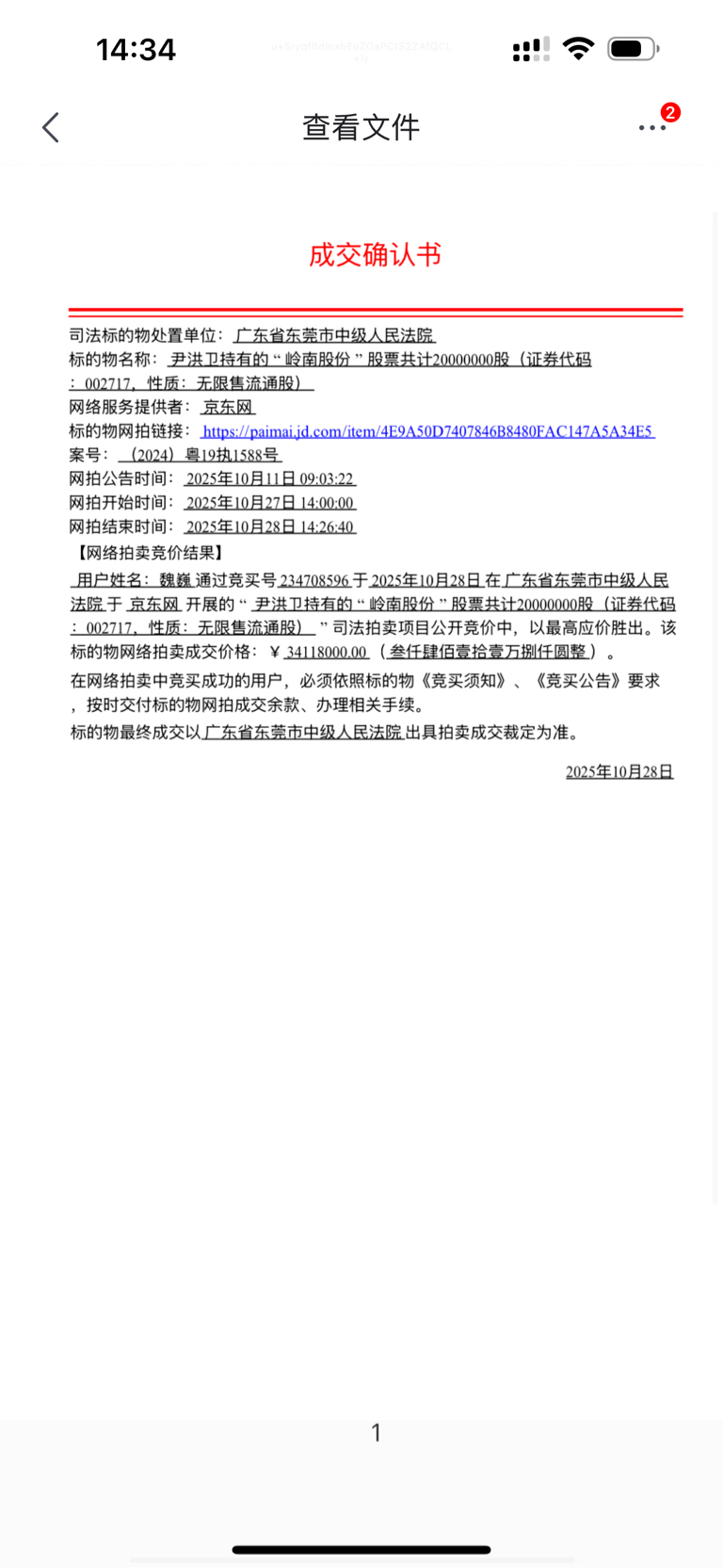 $ST岭南(SZ002717)$ 恭喜巍哥34118000元,相当于1.71元/股拿下!