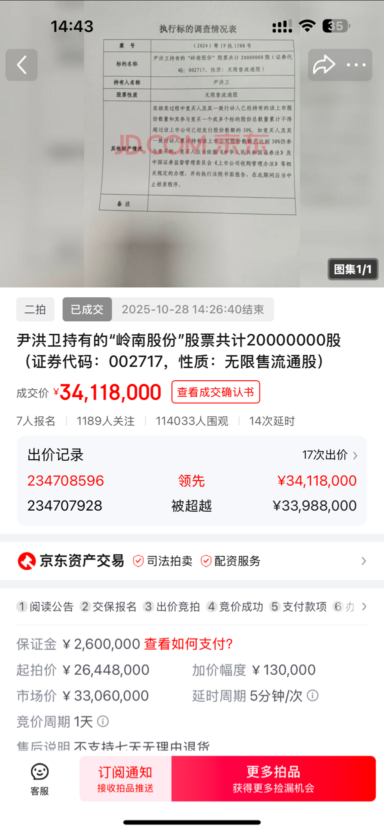 $ST岭南(SZ002717)$ 还有两个拍卖