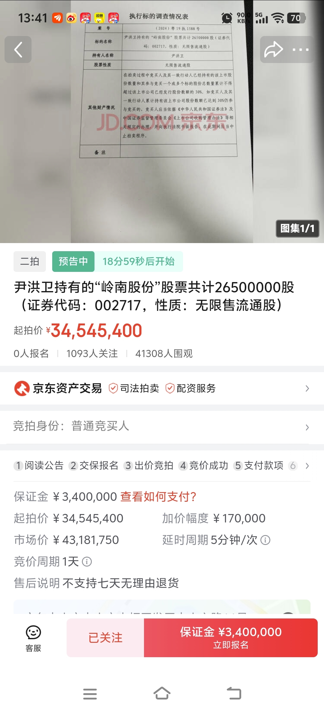 $ST岭南(SZ002717)$ 这要是有两个人报名的话,股价直接能飞起来!
