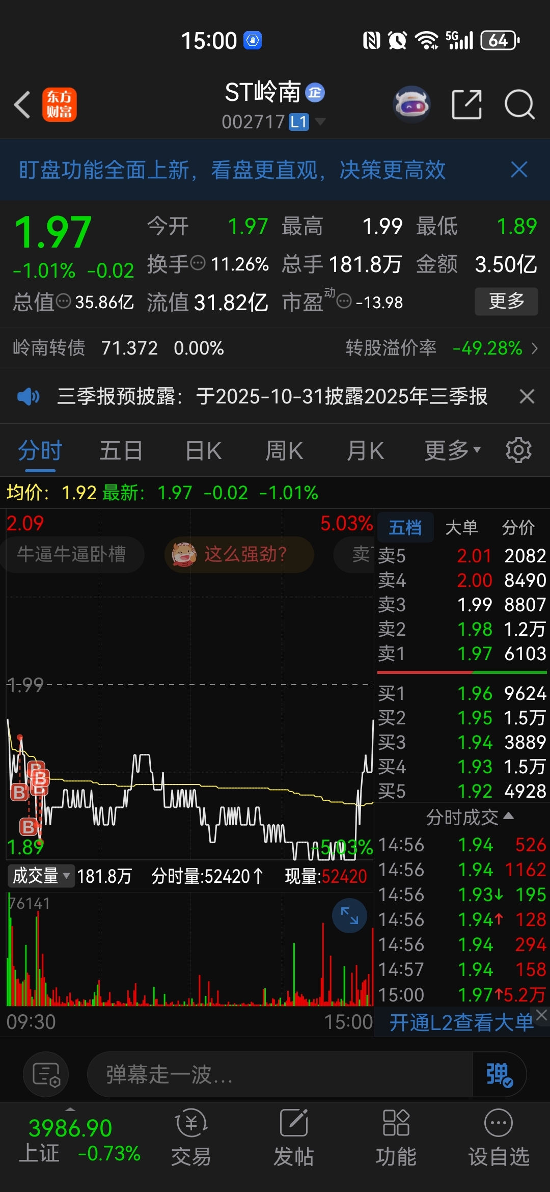 $ST岭南(SZ002717)$ 今天加仓加舒服了,这么多牛散加入,看来立案不会出幺蛾子了