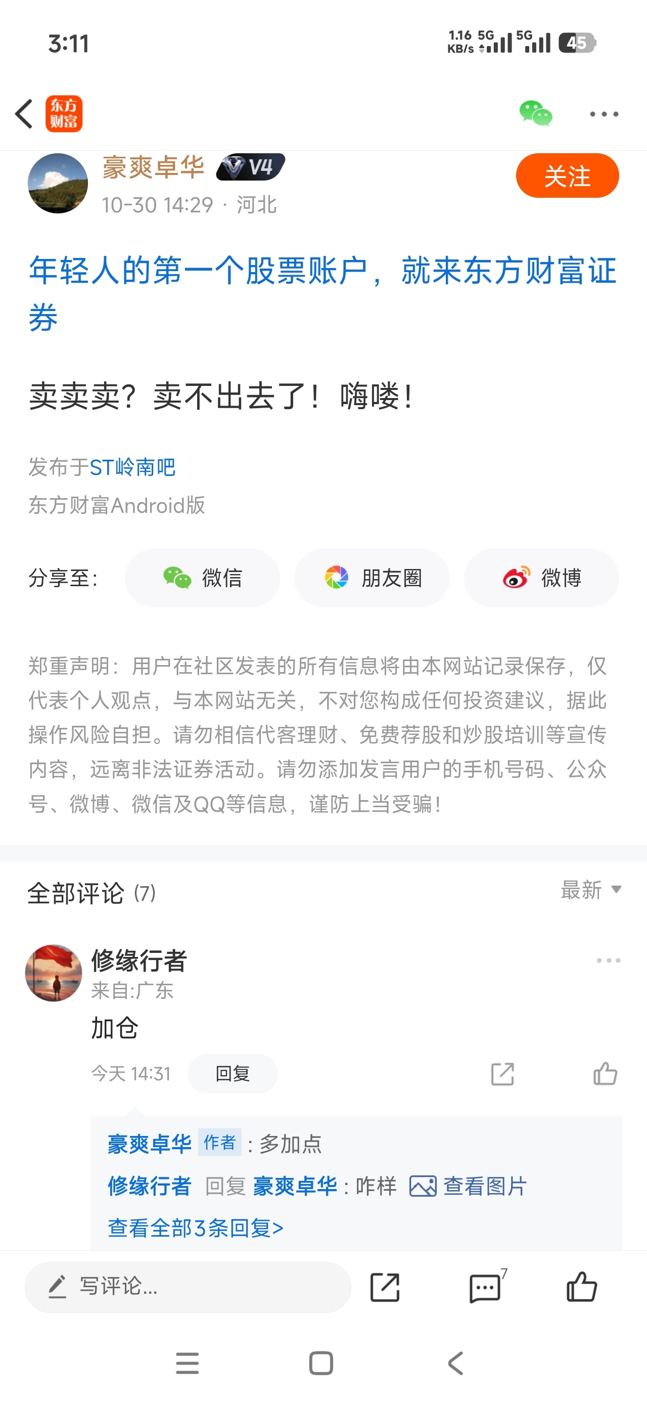 温馨提示: 1.根据《证券法》规定,禁止编造、传播虚假信息或者误导性信息,扰乱证券市场;2.用户在本社区发表的所有资料、言论等仅代表个人观点,与本网站立场无关,不对您构成任何投资建议。用户应基于自己的独立判断,自行决定证券投资并承担相应风险。《东方财富社区管理规定》