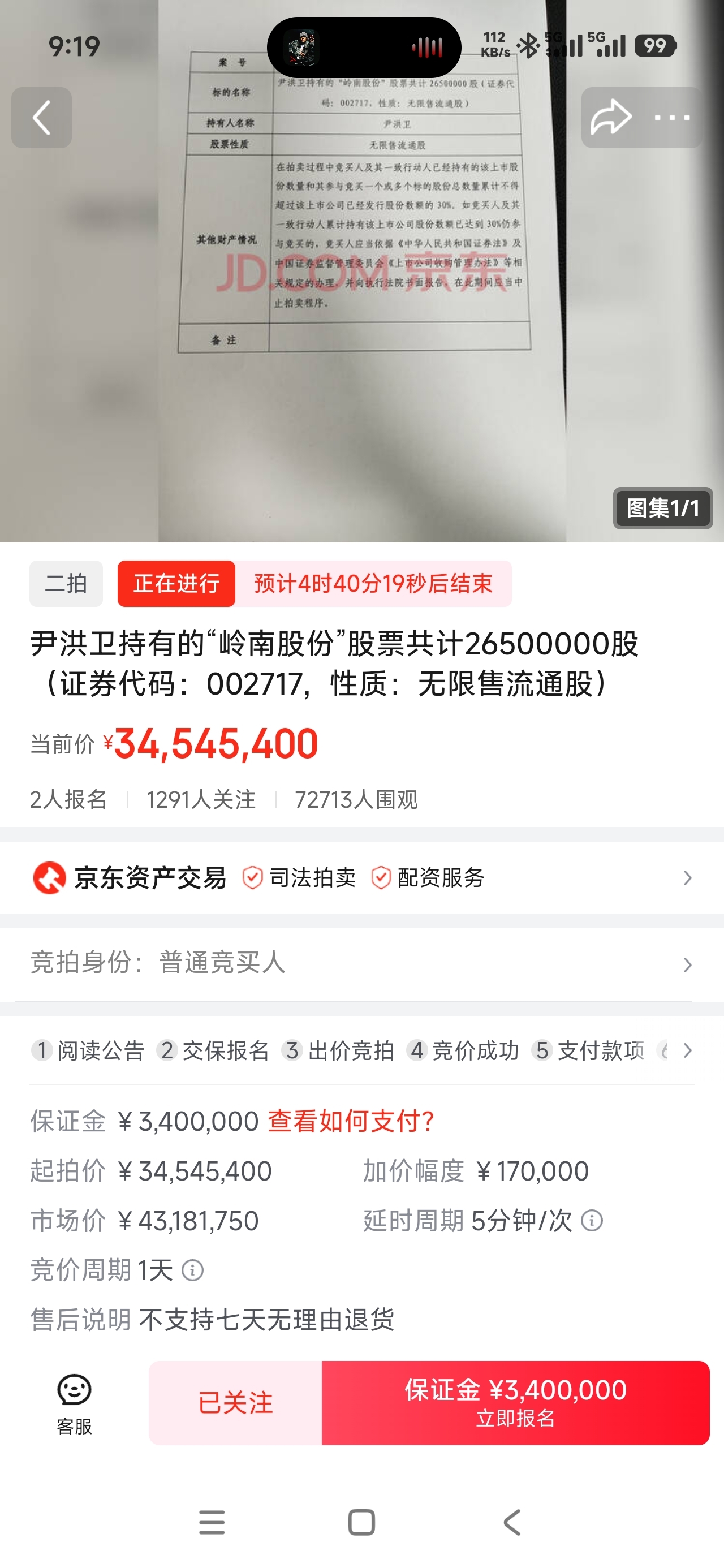 $ST岭南(SZ002717)$ 手里有票就拿着,跌了可以适当加仓,现在就有2人报名,拍卖人数还会增加,要是今天被拍卖,能上三元