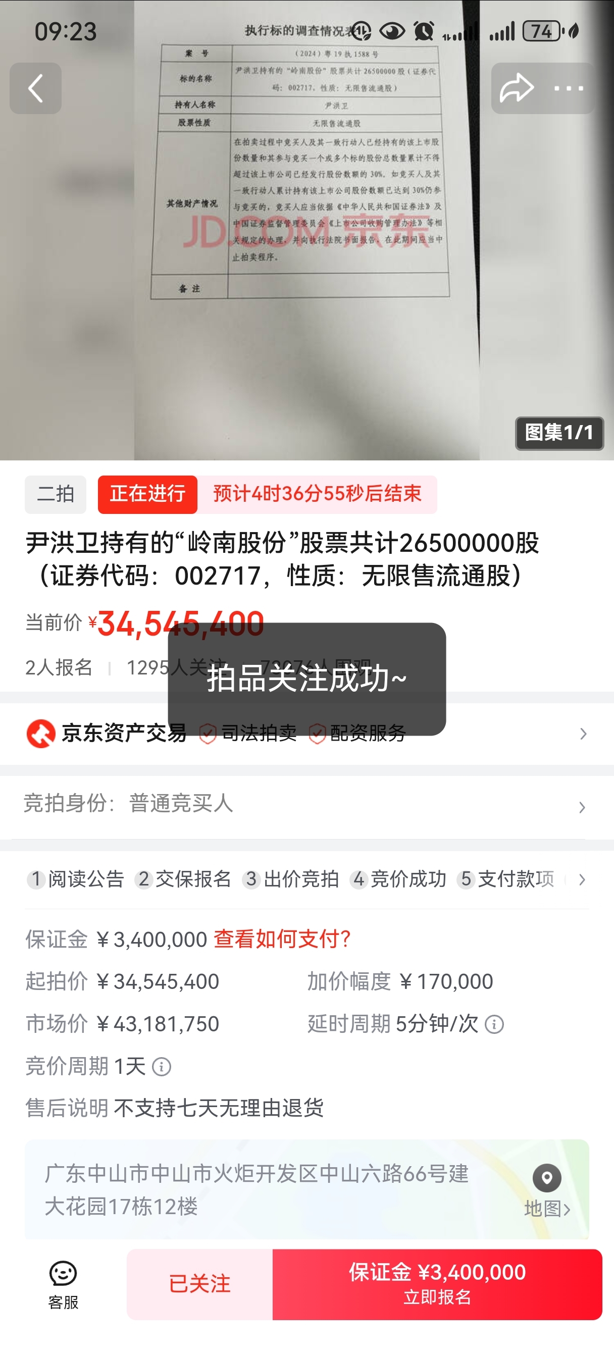 $ST岭南(SZ002717)$ 百分百不会流拍了