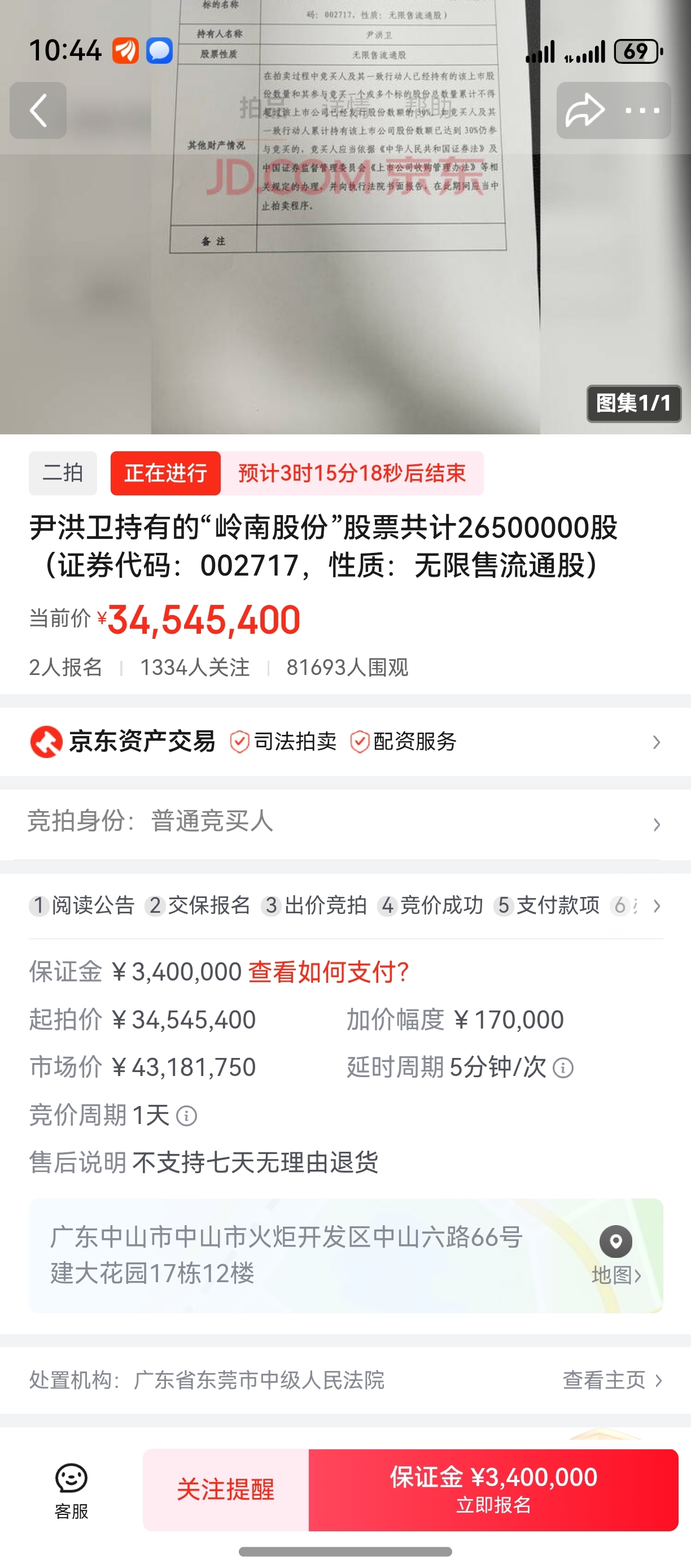 $ST岭南(SZ002717)$ 还没有人出价。报名还是两个人