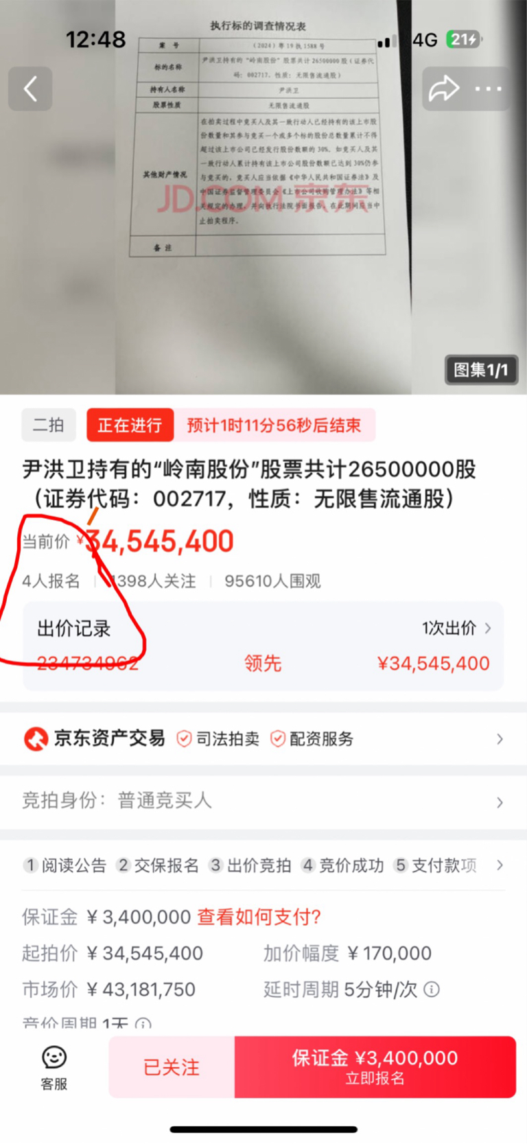 $ST岭南(SZ002717)$ 4个人报名了,下周一还有2千万股变卖,短期来讲最后进的机会就是今天了