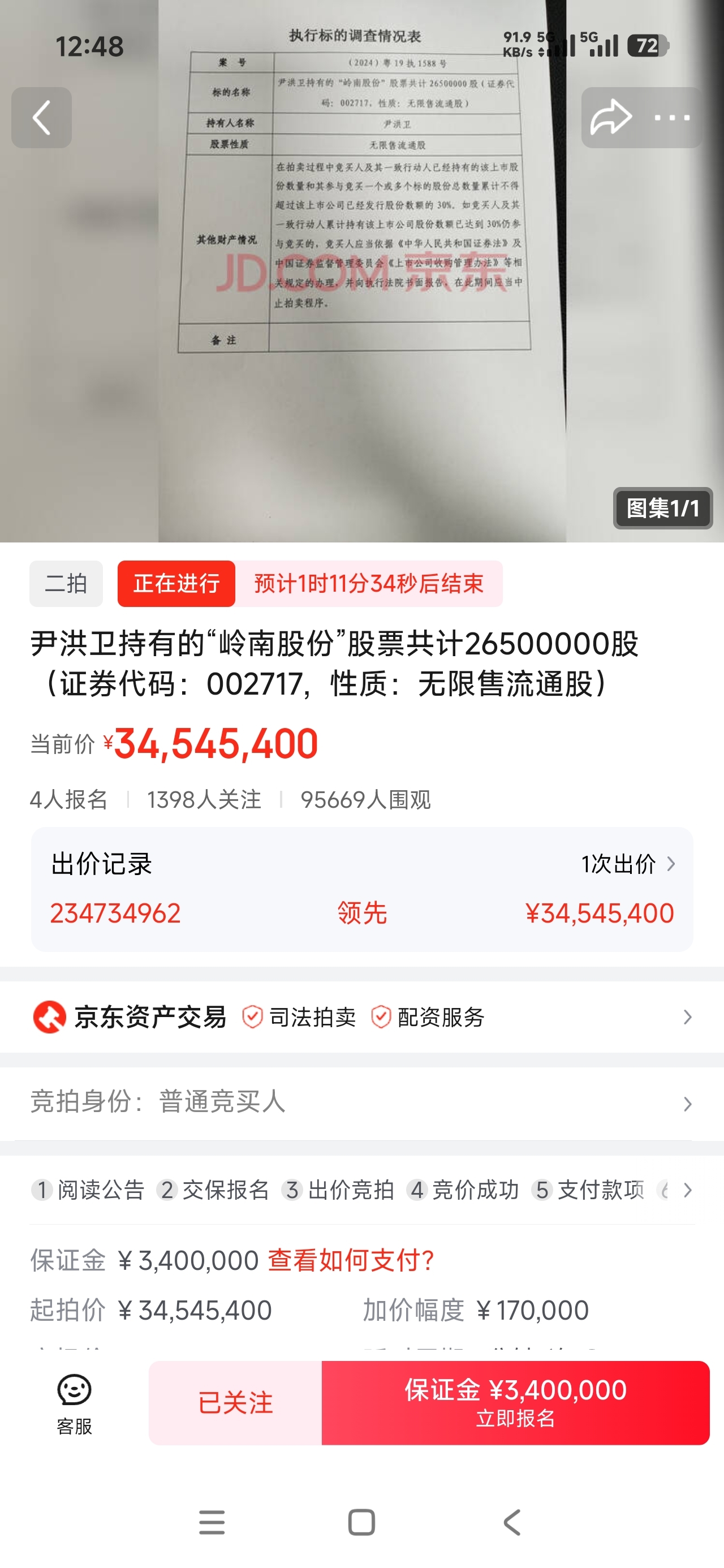 $ST岭南(SZ002717)$ 4962出价一次,还有没有要报名的,拿住筹码,跟着大佬走