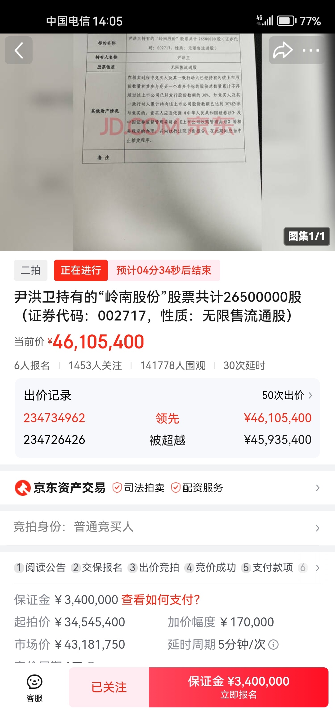 $ST岭南(SZ002717)$ 截至目前,已经有6人报名了,今天涨停2.07元,一路上涨3元,5元以上