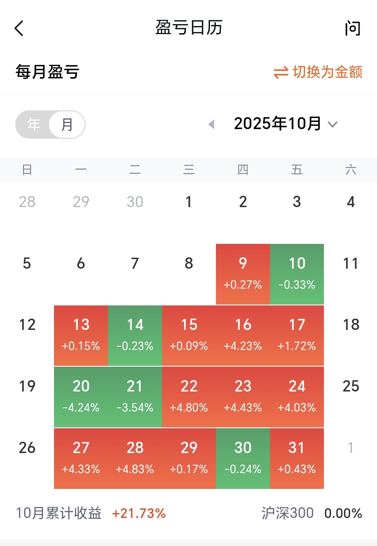 十月份不太理想,还需继续努力。1:确定性。2:ST股3:降成本。成本决定心态。