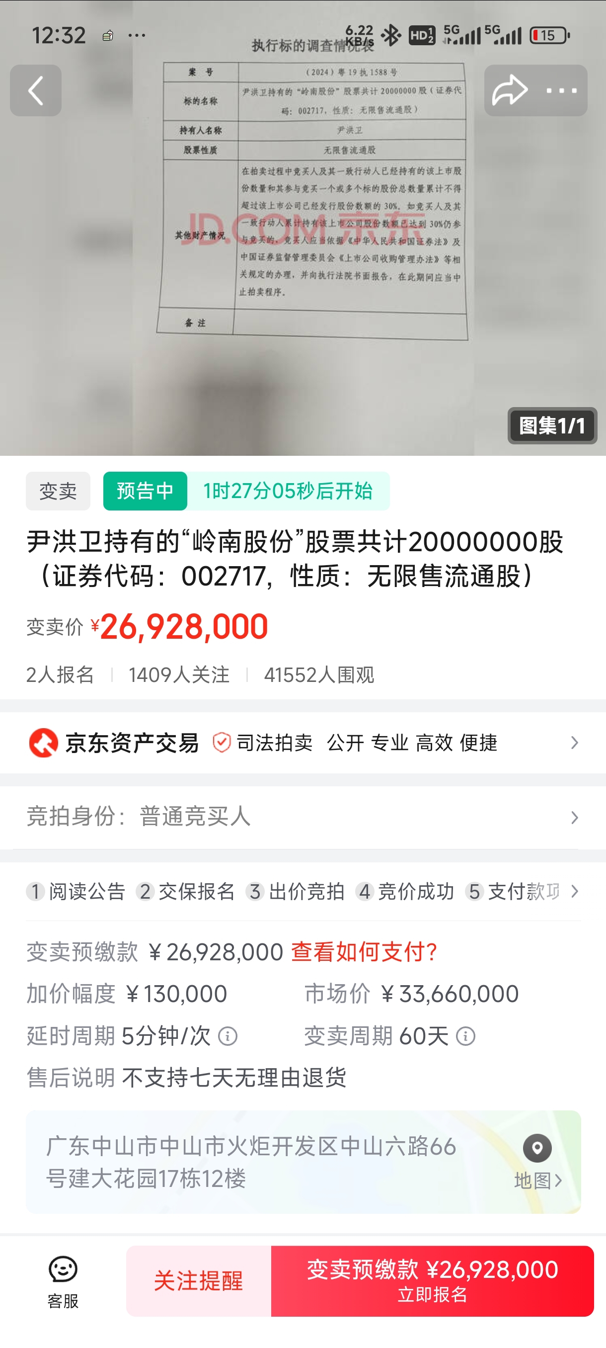 $ST岭南(SZ002717)$ 两人报名,变卖期内随时抢筹
