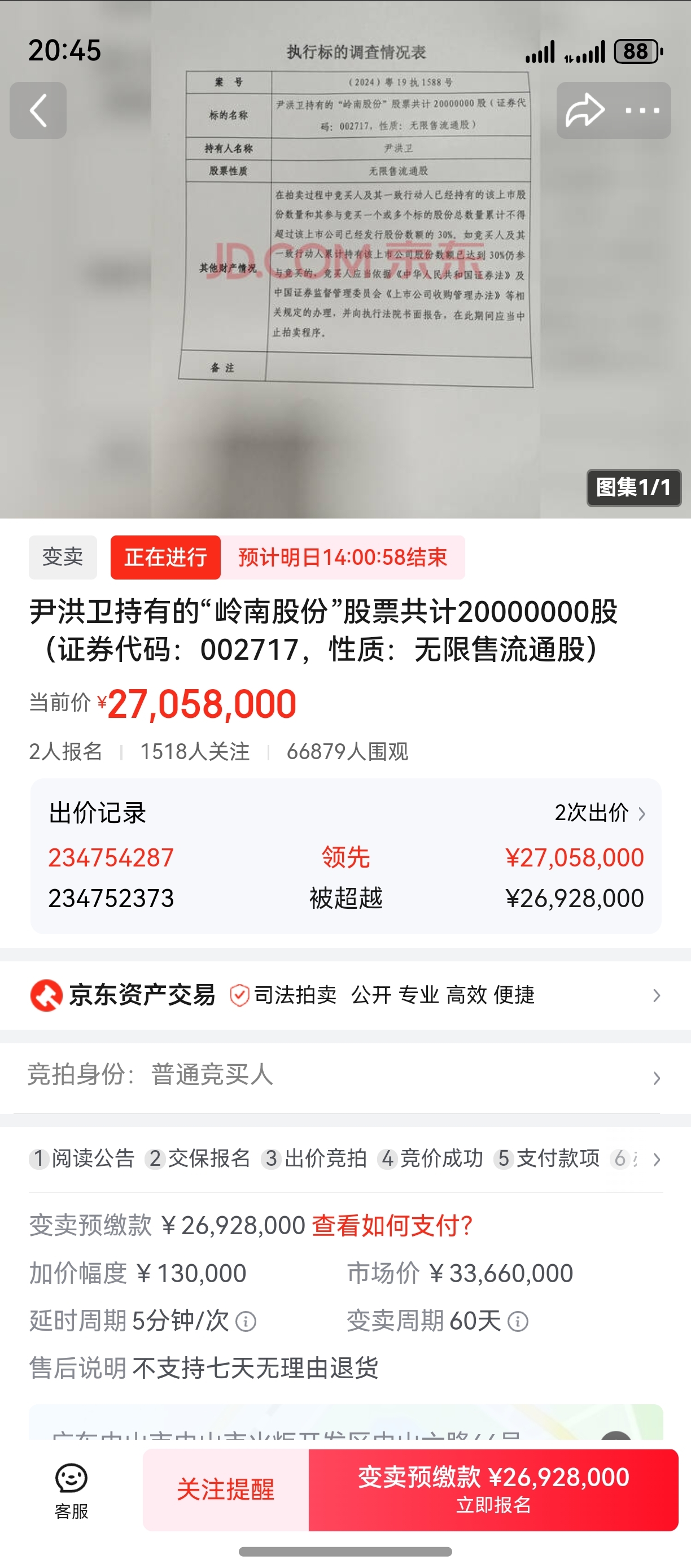 $ST岭南(SZ002717)$ 明天稳了,你有两次出价。