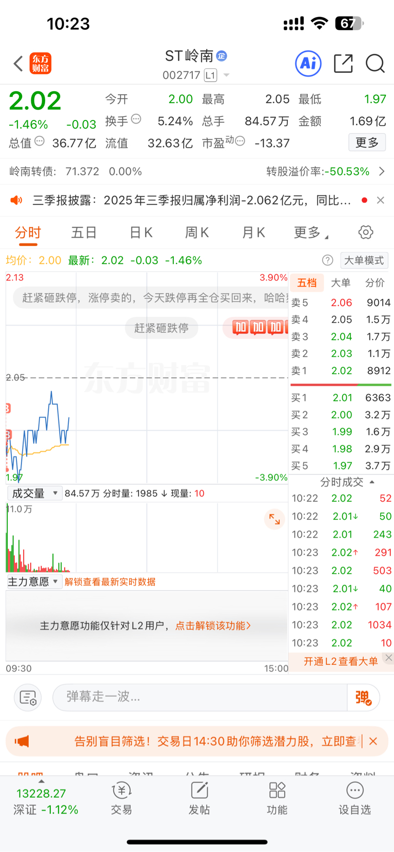 $ST岭南(SZ002717)$ 又买了,下来就买点