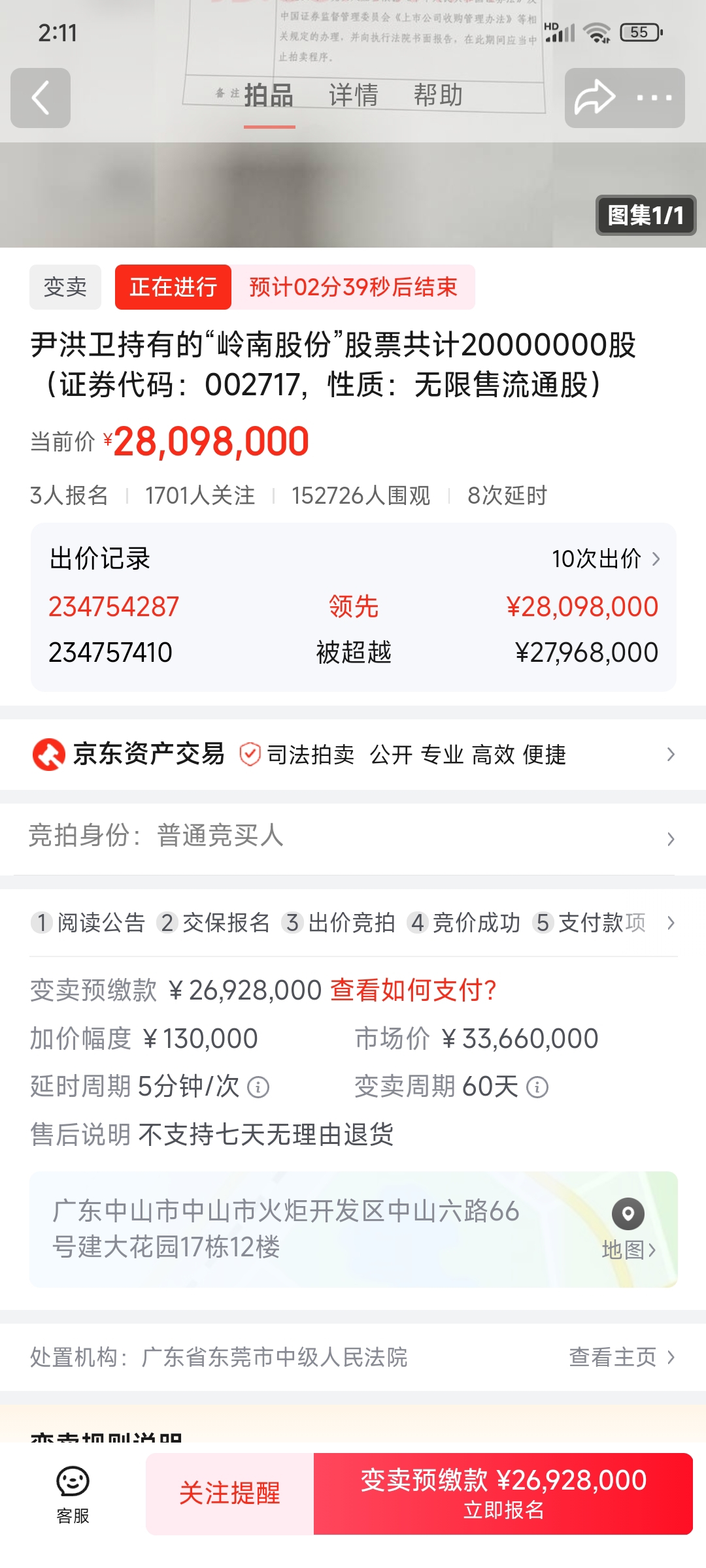 $ST岭南(SZ002717)$ 十多万人围观,重整大牛股,好快出重整公告连续涨停,真么多人几千万挣着拍买就是看好才拍