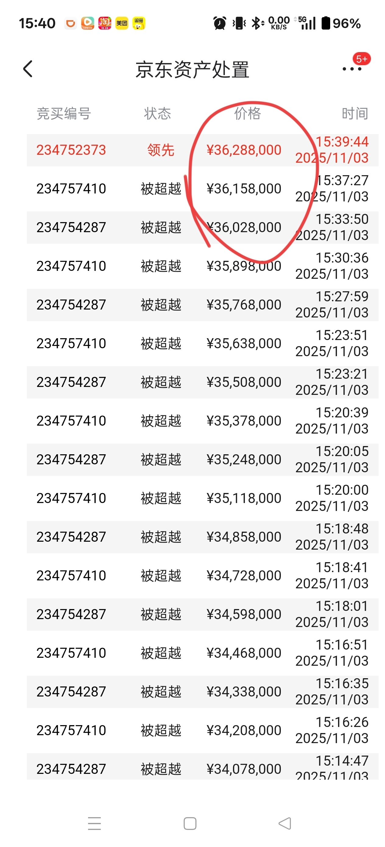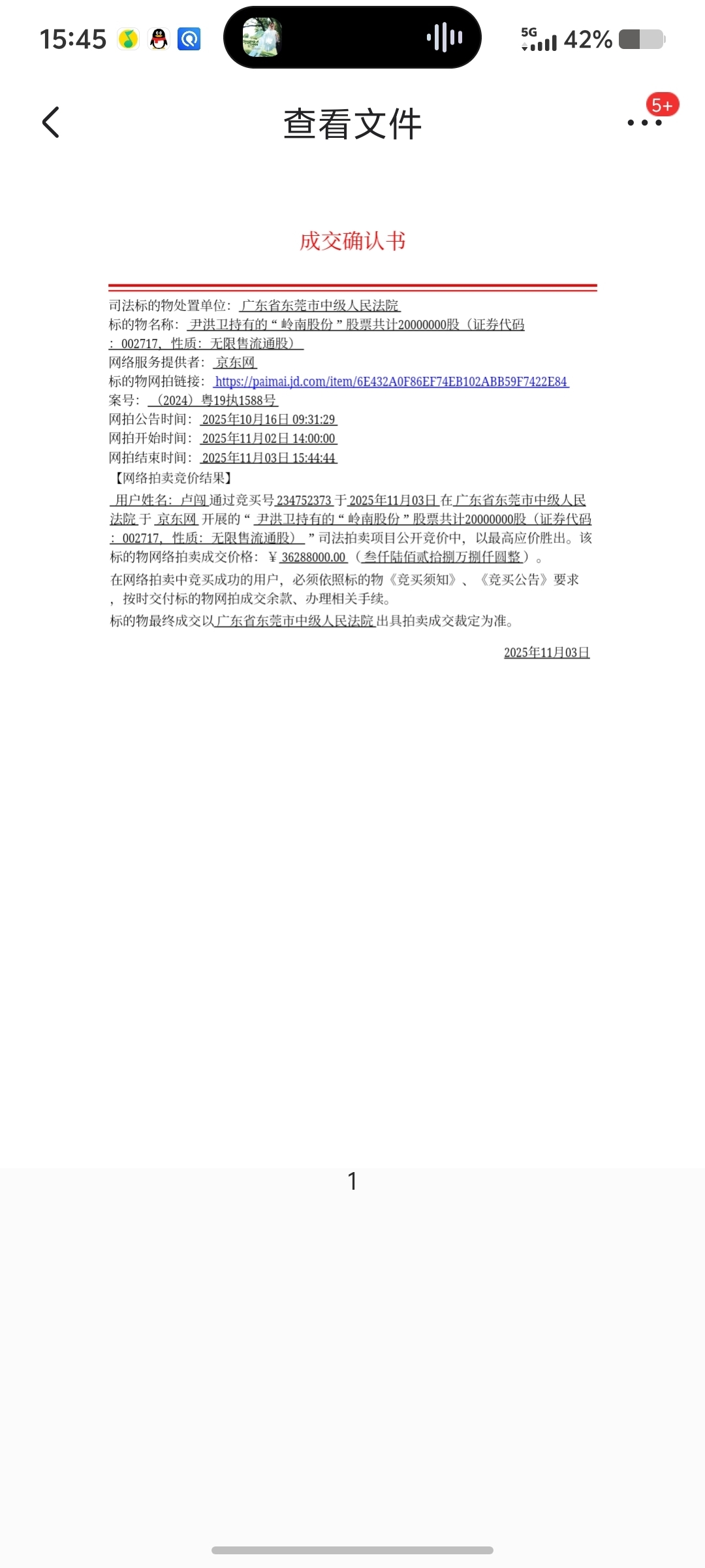 结果最后2分被疑似国资代言人2373卢闯高溢价1000万左右36848万给截胡了!