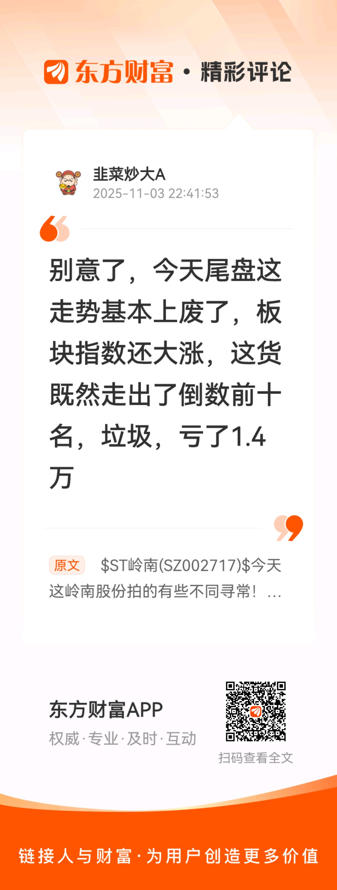 $ST岭南(SZ002717)$ 今天这岭南股份拍的有些不同寻常!
