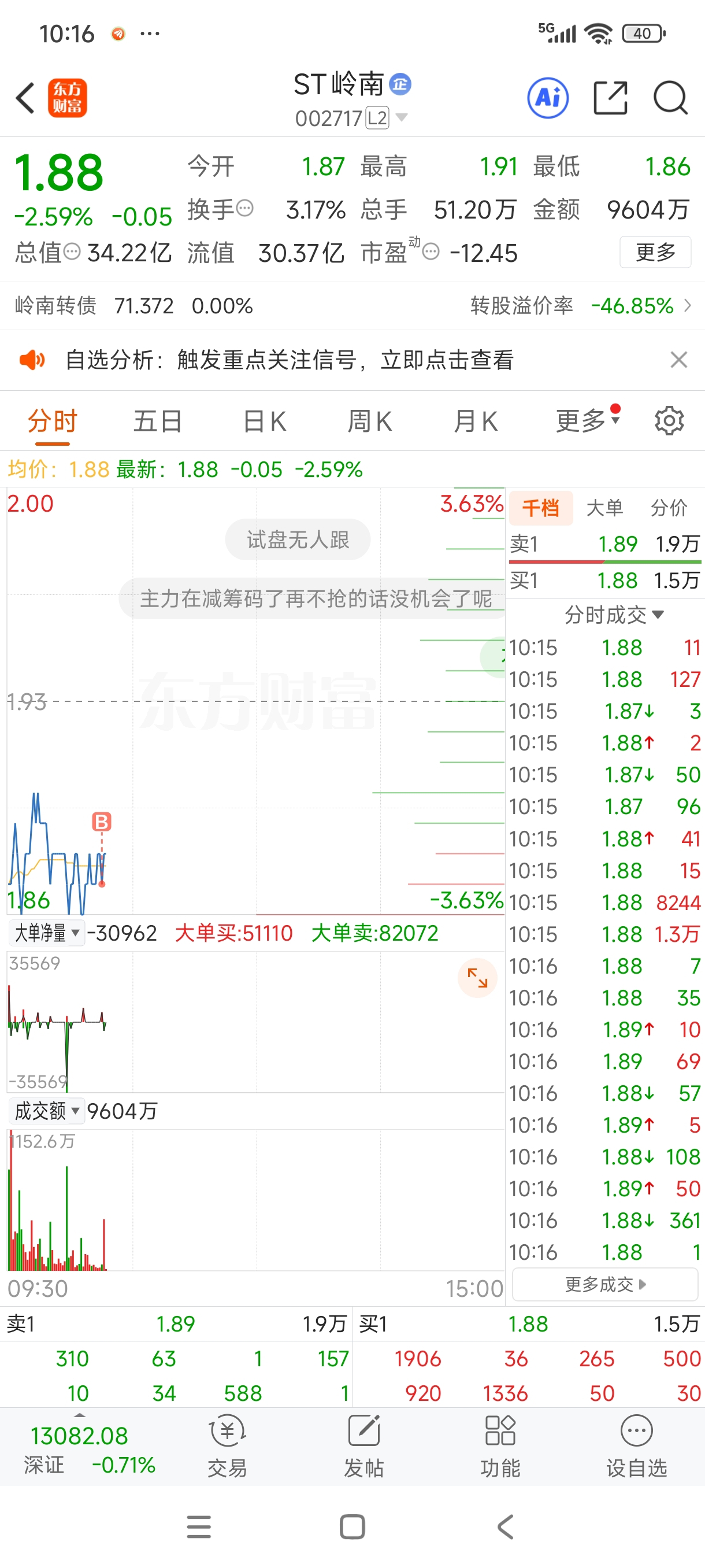 $ST岭南(SZ002717)$ 在掏老庄筹码