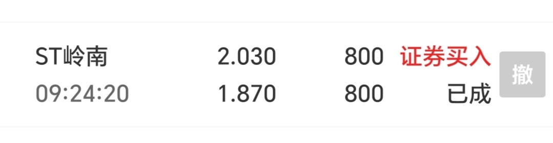 $ST岭南(SZ002717)$ 家人们,虽然我钱少,可开盘集合竞价看不惯小庄跌停板吓人我挂涨停价买的几手,也算是尽了一点绵薄之力吧