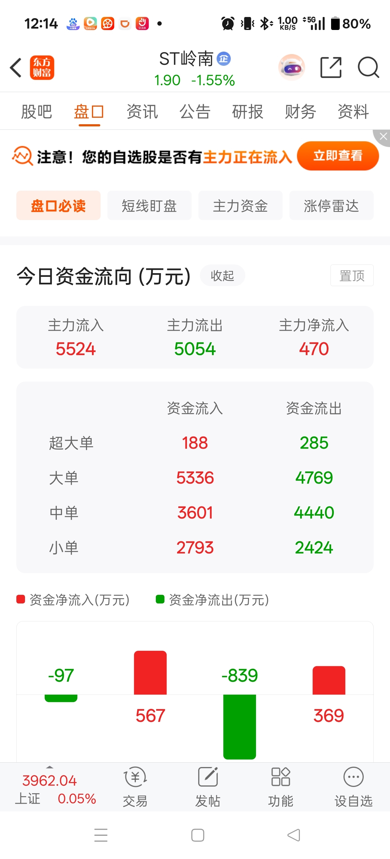 $ST岭南(SZ002717)$ 超大单和大单净流入,吃相太难看了~