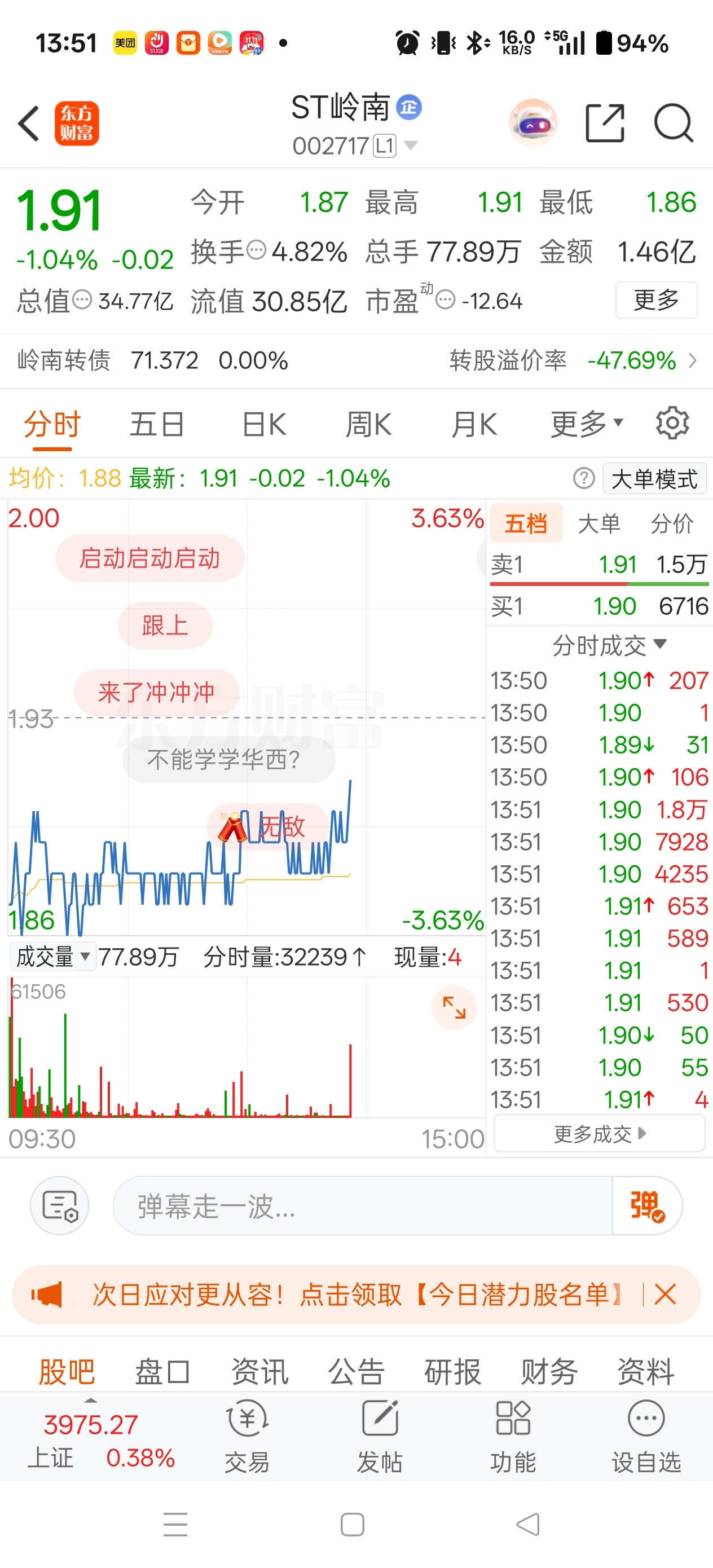$ST岭南(SZ002717)$ 趁我们没注意,一口闷了1.8w。这猪力~等不及了