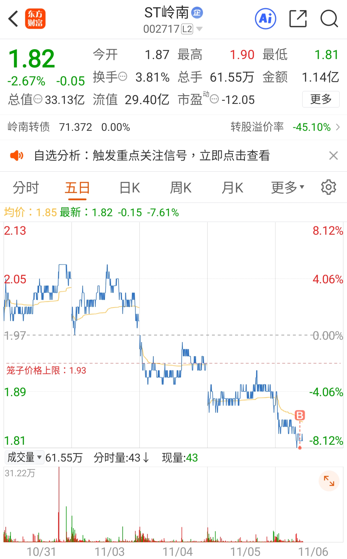 $ST岭南(SZ002717)$ 1.81收点票。跌了四天。$洲际油气(SH600759)$ 今天下跌也收了票。希望你们下午都向上冲,让我赚钱走。