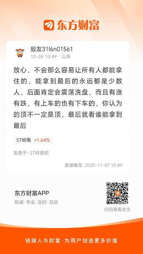 温馨提示: 1.根据《证券法》规定,禁止编造、传播虚假信息或者误导性信息,扰乱证券市场;2.用户在本社区发表的所有资料、言论等仅代表个人观点,与本网站立场无关,不对您构成任何投资建议。用户应基于自己的独立判断,自行决定证券投资并承担相应风险。《东方财富社区管理规定》