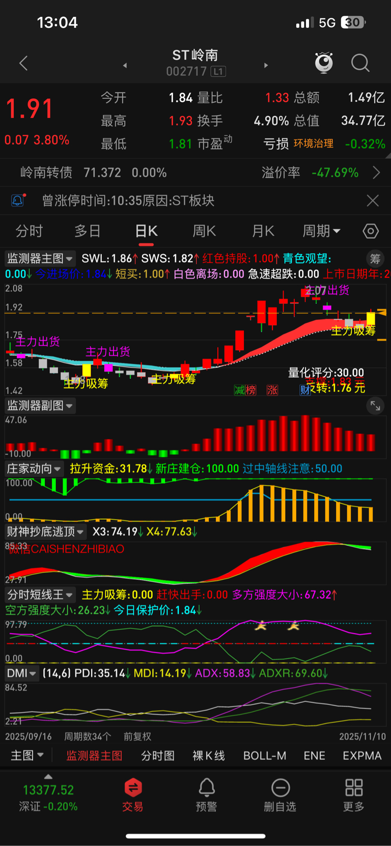 $ST岭南(SZ002717)$ 继续吸筹,10倍大牛股