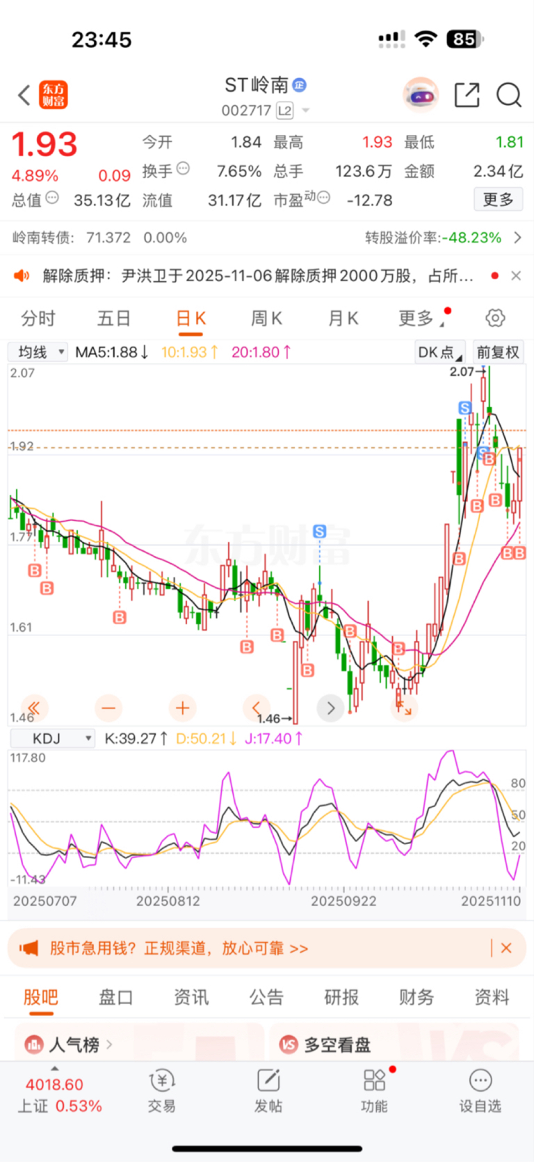 $ST岭南(SZ002717)$ 还是那句话,看好继续持有,陪岭南走下去;看空落袋为安,去找一只更好的潜力股。自己的分析自己知道就行了,没必要全世界都得知道,这又不是狼人杀。