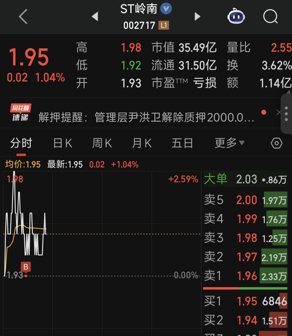 $ST岭南(SZ002717)$ #炒股日记# 不知道这次加仓是对是错