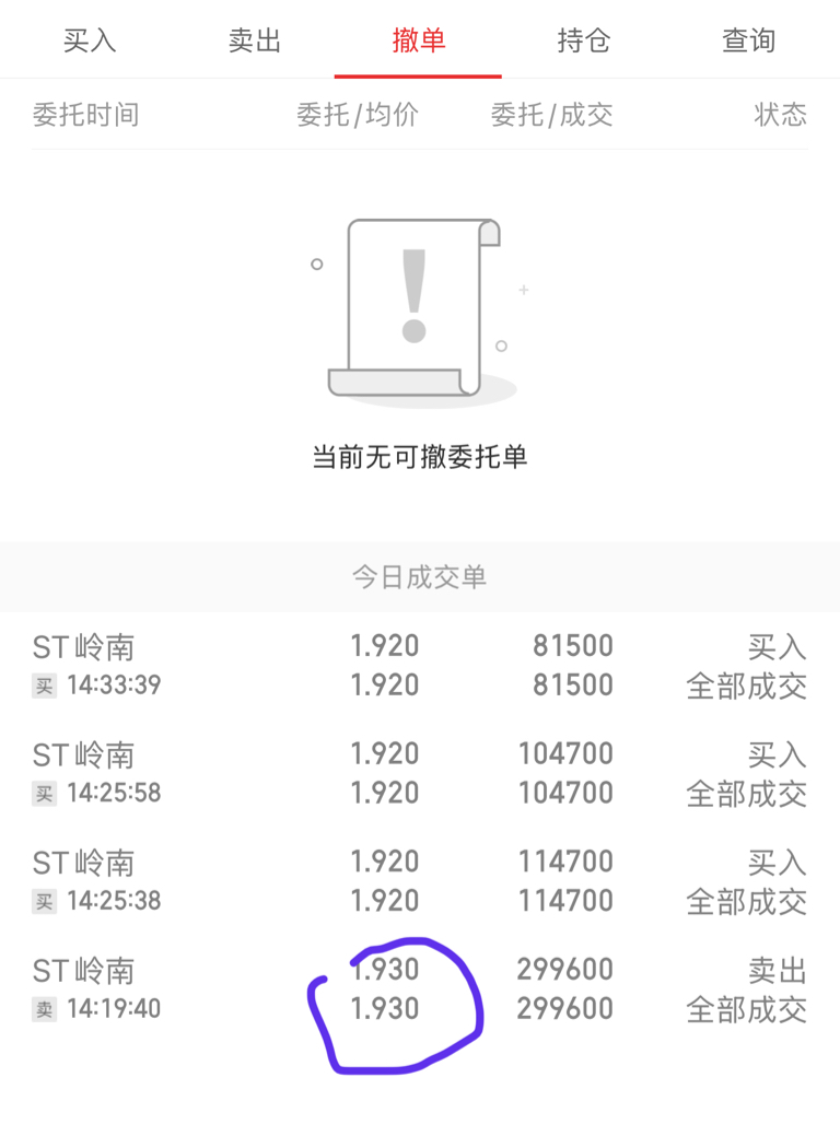 $ST岭南(SZ002717)$ 上厕所的时候闲来无事,1.93全卖,1.92全买,T了0.5个点。