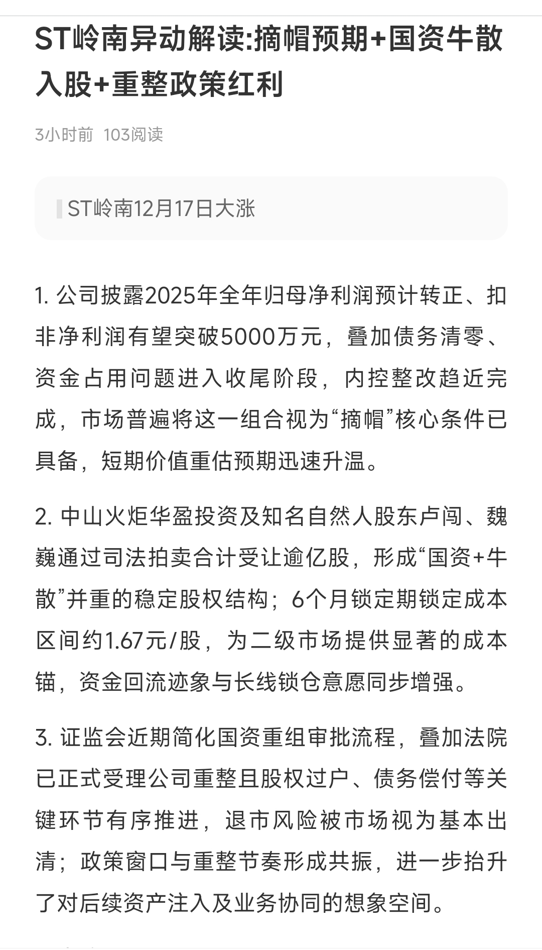 $ST岭南(SZ002717)$ 希望能够稳步前行
