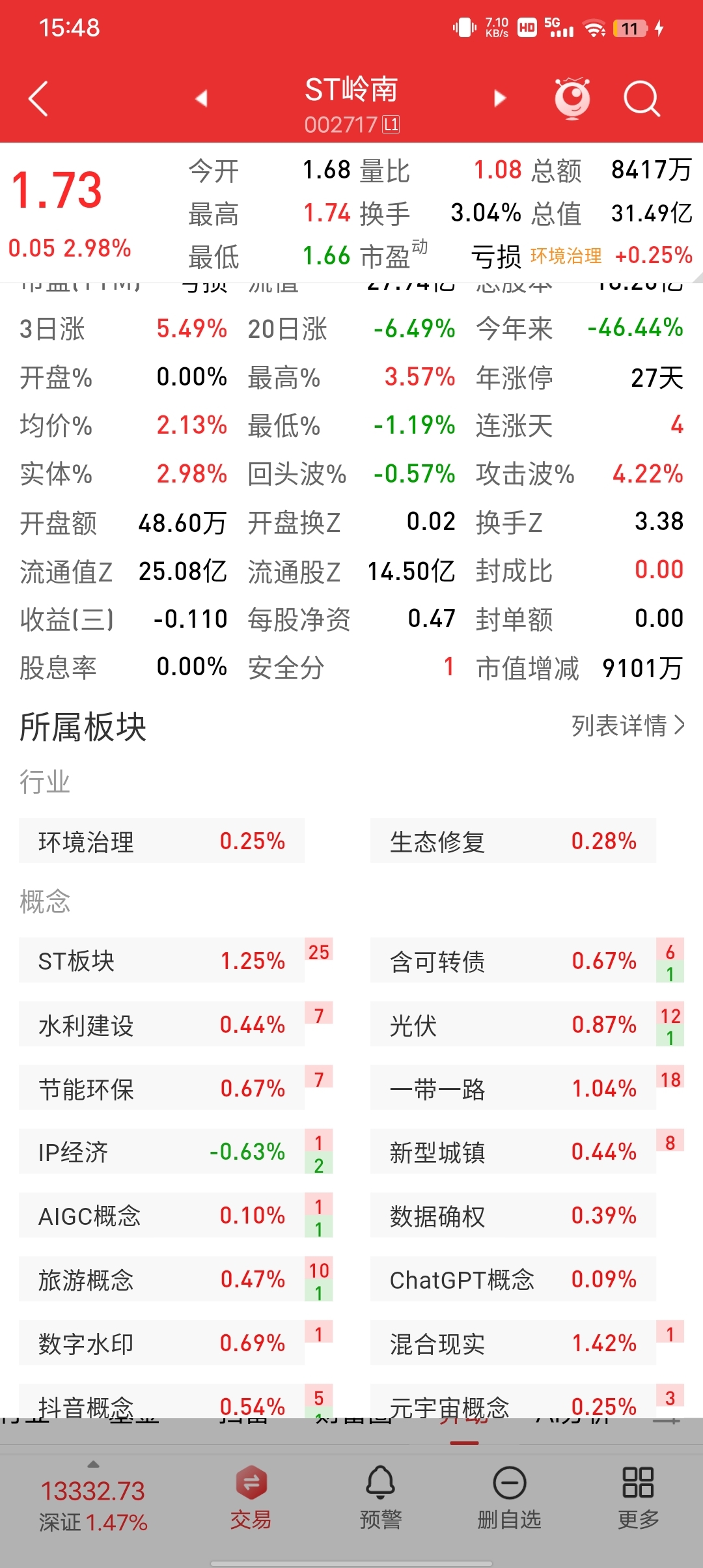 $ST岭南(SZ002717)$ 看这一波ST板块能涨多久吧?ST板块大涨好几天了。如果SD板块突破新高的话,这股票拍卖完成的话,应该也会有行情的。