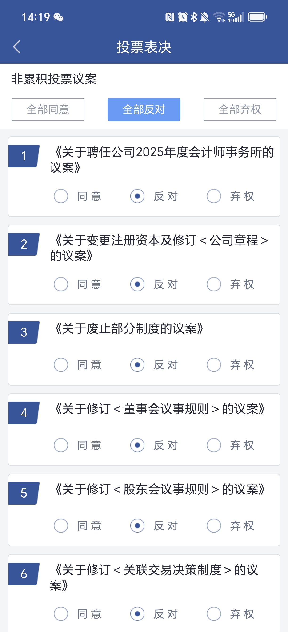 全部反对,最好能全部不通过。